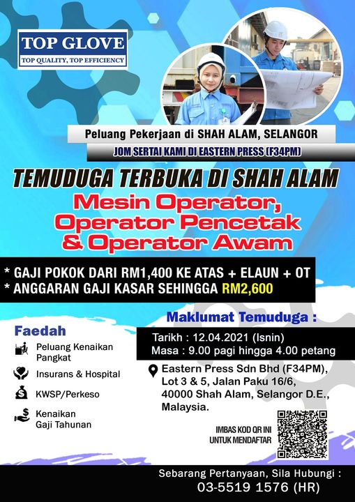 Jobs now available in Shah Alam. Isnin - sabtu 9. Gaji sehingga RM9585 kelayakan minima SPM.